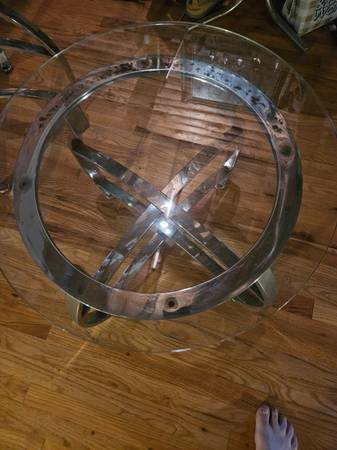 2) Nice, Custom glass table... Glass tops, Chrome bases.... Classic Curved legs..... Height is right for bedside, sofaside.. Sturdy, Exquisite furniture.... Delivery available.... 22 inch Heigth to...