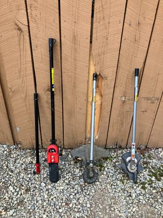 Attachments for weed eater, Trimmer Plus 8", pole saw, adds 8' to your weed eater, has 8" bar, pole saw works great. Used very little.