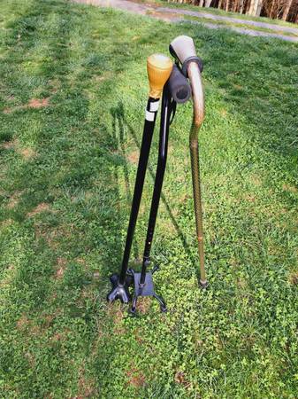 2 sit and stand walkers with brakes 2 folding walkers 5 canes Transfer bench for tub/shower Bed rail Portable potty All lightly used and in great shape. Make me an offer for whatever items you want.